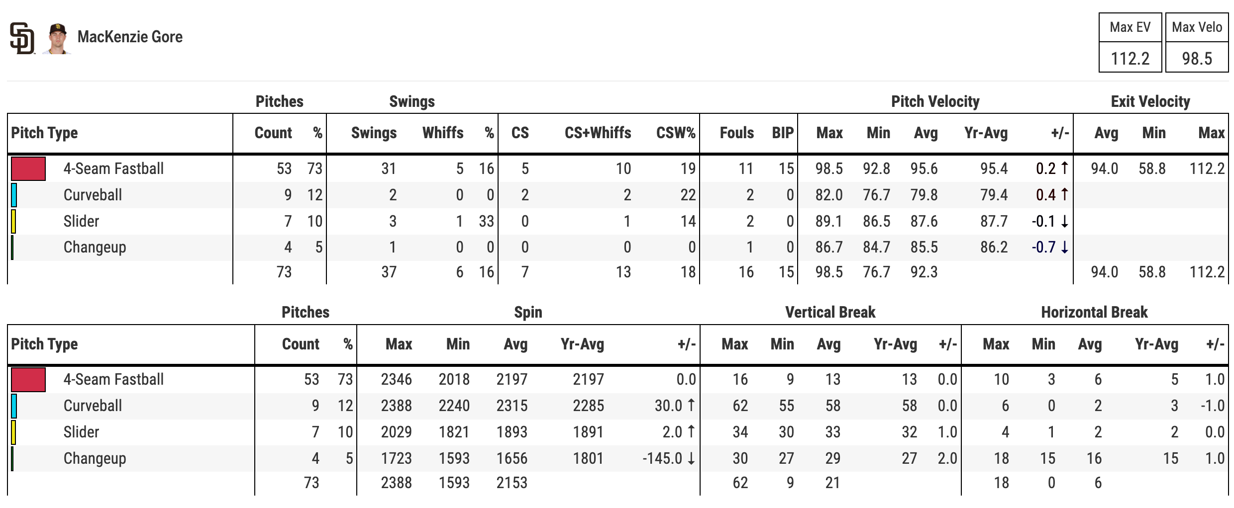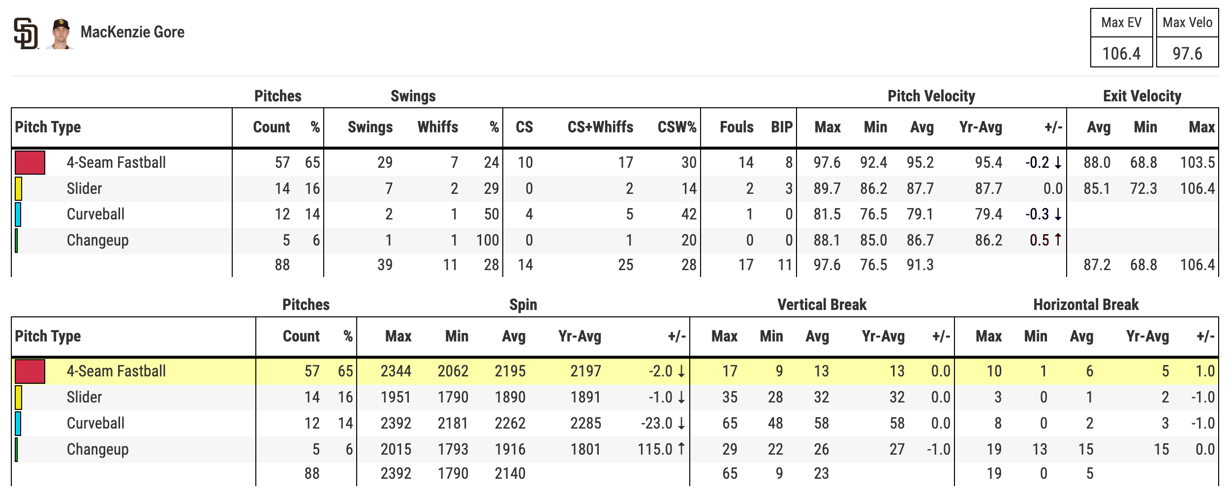 The fastball dropping from 73% to 65% shows that he was much more comfortable with his other pitches. What can we expert from Gore today? What about after today? Those are the things that I want to dig into a little bit deeper.