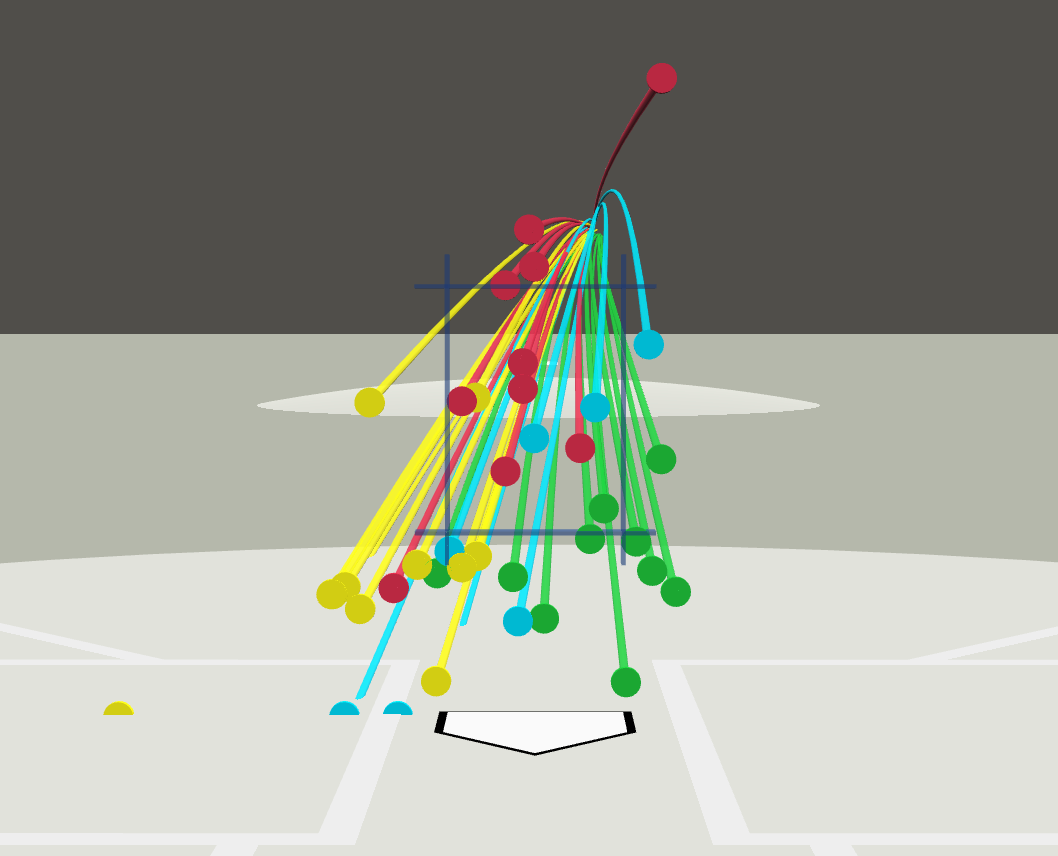 Yup, that’s bad. Looks like Snell lost his control and couldn’t find the strike zone. A look at his location says that he was having a hard time throwing anything but his fastball for strikes: