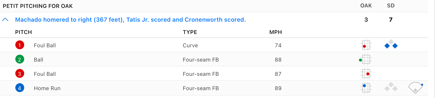 There are few things more entertaining than an at-bat when Manny Machado knows he has the pitcher’s number. When the A’s brought in Yusmeiro Petit to face Machado with two guys on in the bottom of the 5th, you could see a smile creep across his face. He knew.